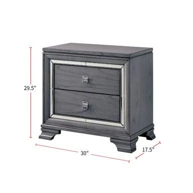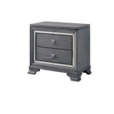 Mirror inserts trim the drawer faces to add an element that plays with ligHeight Acrylic drawer pulls add a level of lightness and stay in the contemporary realm. Mirror inserts trim the drawer faces to add an element that plays with ligHeight Acrylic drawer pulls add a level of lightness and stay in the contemporary realm. Featuring a contemporary design with commodious two drawers allow you to reach to all important commodities in one go easily. All drawers also features English dovetail construction. Sturdily made up of solid wood and metal, this nightstand is finished in light grey color. This simple yet functional nightstand will bring a beautiful accent to any bedroom decor.