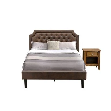 2-Pc Bed Set – Platform Bed And An Antique Walnut Night Stand – Dark Brown Faux Leather And Black Legs(Bed Size Options) – GB25F-1GA08