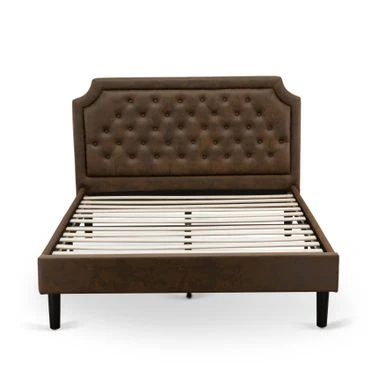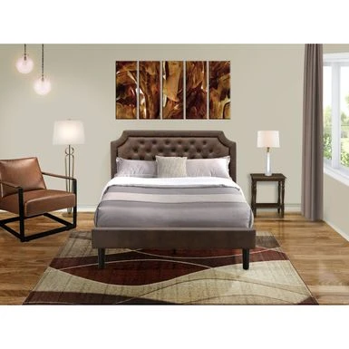 2-Piece Platform Bedroom Set- Bed And Distressed Jacobean Nightstand- Dark Brown Faux Leather- Black Legs (Bed Size Options) – GB25F-1BF07