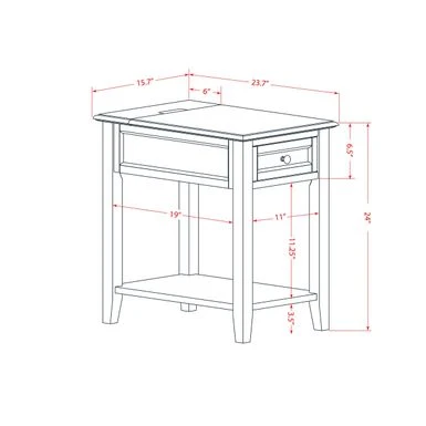 - Nightstand: Length: 23.7; Width: 15.7; Height: 24
