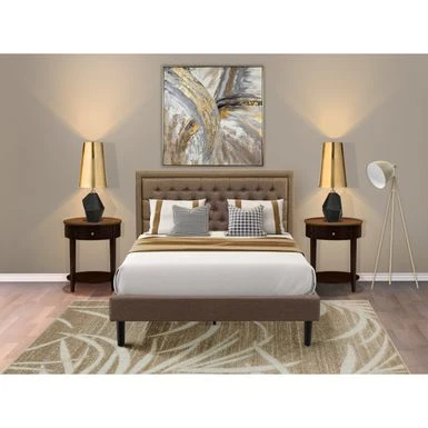 This attractive bed set makes a beautiful addition to any bedroom in your home. Our 3 Piece bedroom set contains 1 wooden bed frame and 2 wooden night stand with 1 drawer. Our bedroom set will impress everyone that will come to your house because it fits with any type of decor. We have constructed this bed frame and modern nightstand by using engineered wood to make strong support for you and your mattress. This versatile bed features a wood headboard made from robust wood that will surely be the focal point of your bedroom and a great place to lean on and relax, foam padding covered with Brown Linen Fabric. This bedroom set is low-maintenance furniture and it is a great choice for Budget-friendly. The step-by-step assembly instructions for headboard, footboard, wood slats and other accessories are all in the package, you will be able to do assemble these in a short time. Our Linen Fabric headboard is quite easy to clean and always offers a great appeal. Our product will add more beauty to your room and you will feel well.Â