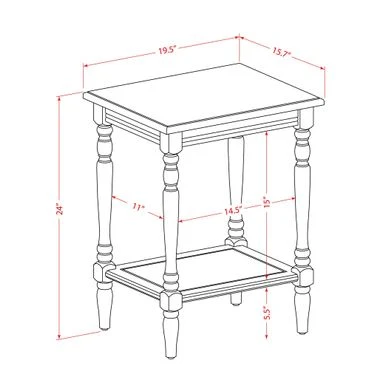 - Night Stand Dimensions: Length: 19.5; Width: 15.7; Height: 24.