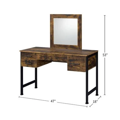 Rustic wood frame with metal accents celebrates the beauty of raw materials for a true industrial feel. Straight lined-metal border with dark finish highlights the elaborate silhouette of the desk. Rustic wood frame with metal accents celebrates the beauty of raw materials for a true industrial feel. Straight lined-metal border with dark finish highlights the elaborate silhouette of the desk. Vanity mirror attached to the tabletop will ease your beauty routine, while four storage drawers in different sizes help you organize all your makeup.