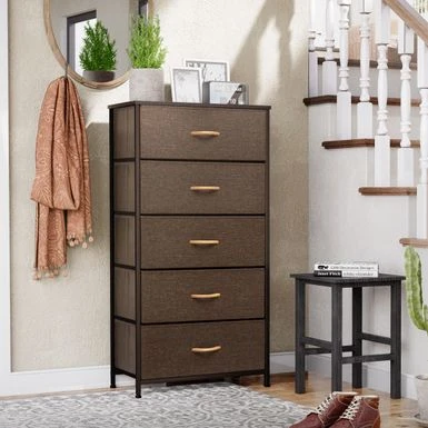 Get organized in style with this 5 Drawer Vertical Dresser Storage Tower. Its spacious design provides ample storage space for all your clothing and linen essentials, while its vertical shape makes it easy to fit into any room. The steel frame and high-quality fabric ensure durability, while the wooden top offers additional surface space for lamps and décor. Choose from a variety of colors to match your bedroom or closet décor.