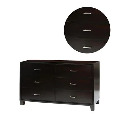Sleek and lustrous espresso finish dresser gives the a stylish and contemporary feel. Features generous drawer (six drawers)space for storage of bedroom items. With a long-lasting, sturdy wood construction makes this perfect piece in your bedroom. Sleek and lustrous espresso finish dresser gives the a stylish and contemporary feel. Features generous drawer (six drawers)space for storage of bedroom items. With a long-lasting, sturdy wood construction makes this perfect piece in your bedroom.