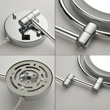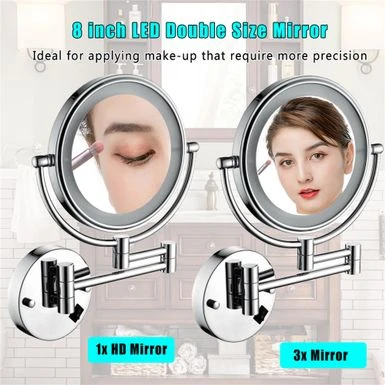 - TWO-SIDED MAGNIFICATION & WALL-MOUNT: Wall Mount Installation and Electric Plug Powered. Touch to turn on/off. One side is regular mirror and the other is 3X magnification mirror. The regular side is perfect for daily uses, cosmetics, and every beauty need. The 3X magnification side uses for wearing contact lenses, eyebrow trimming, makeup, and shaving. Please use 3x magnification within 2 inch to get true image.