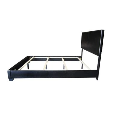 - Black faux leather upholstery
