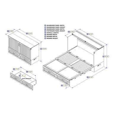 - Queen: 24.38″L x 62.5″W x 40.75″H