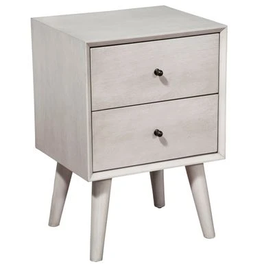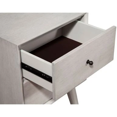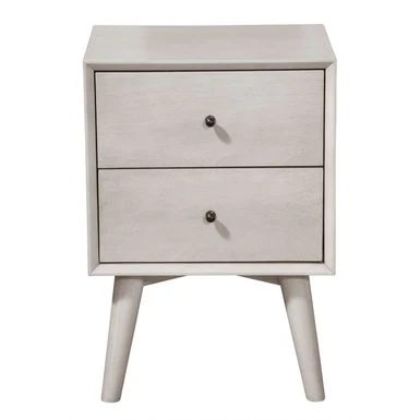 Add a touch of timeless style to your bedroom with the Alpine Furniture Flynn Mid-Century Modern 2 Drawer Nightstand in Gray. Built to last, this nightstand is made with sustainably sourced solid Mahogany and features classic Mid-Century Modern lines. With two spacious drawers, it provides ample storage space for all your bedside essentials. The ball bearing metal drawer glides and French & English dovetail construction ensure smooth operation and durability. This nightstand comes fully assembled and coordinates with other pieces in the Alpine Furniture Flynn collection, sold separately.