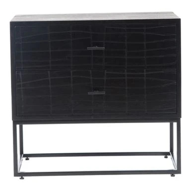 - Materials: Solid acacia case, iron legs