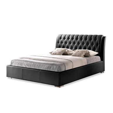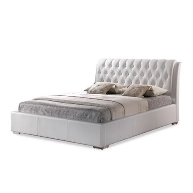 Give a feel of comfort and elegance to your bedroom with thisfull-sized stuffed headboard bed. This contemporary platform bedmeasures 43.31 inches high, 61.14 inches wide and 87.72 inches deepand is constructed of faux leather and wood with foam upholstery.Made by Baxton Studio, this bed is easy to clean and only requiresa mattress.