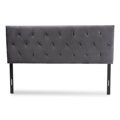 Build a lovely bedroom scene with the elegant charm of the Felix headboard. Made in Malaysia, this headboard is comprised of a sturdy wood frame padded with foam and upholstered in sumptuous velvet fabric. Build a lovely bedroom scene with the elegant charm of the Felix headboard. Made in Malaysia, this headboard is comprised of a sturdy wood frame padded with foam and upholstered in sumptuous velvet fabric. The crisp, rectangular frame forms a sleek outline while diamond tufting adds a touch of refinement. Requiring assembly, the Felix features three pre-drilled holes in its legs for easy height customization. Providing excellent back support in graceful fashion, the Felix headboard is a wonderful addition to any bedroom… Constructed from engineered wood Style: contemporary Materials: fabric, velvet “polyester 100%”, mdf, foam Color: Grey, Dark Brown Diamond tufted Upholstered in velvet fabric and padded with foam Legs feature 3 predrilled holes 3.5″ apart Can be attached to a bed frame (optional, hardware included) Includes: one (1) full size headboard Assembly: Assembly Required Care instruction: spot clean Overall dimensions: 38.00″ -45.90″ high x 57.30″ wide x 2.00″ thick Headboard panel height: 22.60″ Leg height: 29.10″ Height from bottom of panel to ground(lowest adjustment): 15.40″ Height from bottom of panel to ground (highest adjustment): 23.20″ Product weight: 11.5 lbs.