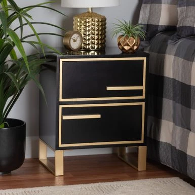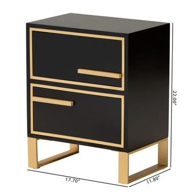 Baxton Studio Giolla Contemporary Glam And Luxe Black Finished Wood And Gold Metal 2-Drawer End Table – Black, Gold