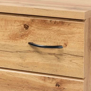 Offering convenient storage in a stunning design, the Maison storage chest is a modern approach to household organization. Made in Malaysia, this chest is constructed from sturdy wood showcasing a natural oak brown finish. Three spacious drawers provide abundant storage space to efficiently organize and declutter any space. Requiring assembly, the Maison features curved metal drawer handles for a sleek touch of modern flair. With superb storage capability and contemporary refinement, the Maison storage chest is an outstanding solution to the needs of your home…