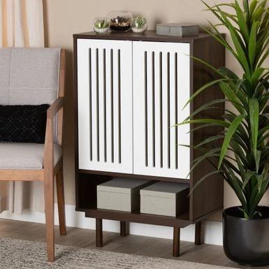 Baxton Studio Meike Mid-Century Modern Two-Tone 2-Door Shoe Cabinet – Brown