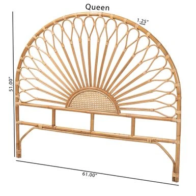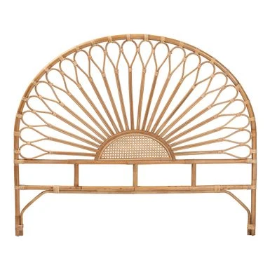 Put together a graceful bedroom environment with the tropical vibes of the Perenna headboard. Made in Indonesia, this lovely piece is meticulously handcrafted from natural rattan with woven embellishments. Slim rattan rods extend throughout the rounded frame for a smooth yet complex geometric display. The Perenna will arrive fully assembled and features a standalone design that sits snuggly between the bed frame and wall with no mounting required. Invoking the appeal of an exotic retreat, the Perenna headboard is an outstanding bedroom accessory.
