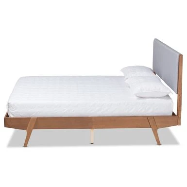 Baxton Studio Senna Mid-Century Modern Fabric Upholstered Wood Platform Bed In Grey – Full