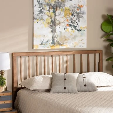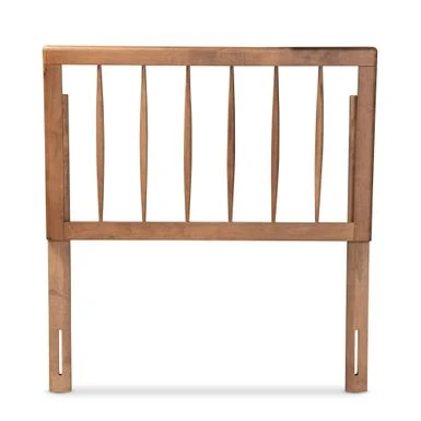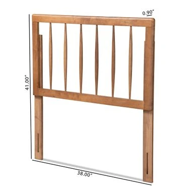 Upgrade your bedroom with the superb Valin headboard. Made in Malaysia, the Valin is constructed from wood showcasing a natural ash walnut finish. Upgrade your bedroom with the superb Valin headboard. Made in Malaysia, the Valin is constructed from wood showcasing a natural ash walnut finish. Its sleek spindle design allows light to easily flow throughout the room and provide a more open feel in tight spaces. Requiring assembly, the headboard is supported by sturdy wood legs that feature six pre-drilled holes for easy height customization. Providing excellent back support when sitting up in bed, the Valin headboard elevates any bedroom… Modern and contemporary headboard Style: modern Materials: rubberwood Color: ash walnut Constructed from rubberwood Ash walnut finish Spindle design Upper back features 6 predrilled holes 2.50″ apart from one another for 5 different height adjustment options Includes: one (1) twin size headboard Assembly: assembly required Care instruction: wipe clean Headboard dimensions: 38″ wide x 41″ high x 0.9″ thick Product weight: 11 lbs.