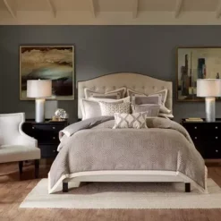 Gray Essence Oversized Cotton Clipped Jacquard Comforter Set With Euro Shams And Throw Pillows Queen