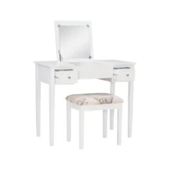 Copper Grove Alcea White Vanity Table With Mirror & Stool – White