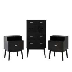 Curtisian 3 Piece 4 Drawer Dresser And Nightstand Bedroom Set By Christopher Knight Home – Black