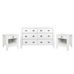 Foisy Faux Wood 3 Piece Dresser And Nightstand Bedroom Set By Christopher Knight Home – White