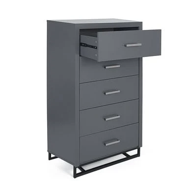 CONTEMPORARY DESIGN: Featuring clean lines and a solid iron base, our five-drawer dresser and nightstand set offers the look, feel, and design of a truly contemporary piece with an industrial touch. With a minimalistic yet refined structure, this set brings out a simplistic style that emphasizes convenience and functionality.