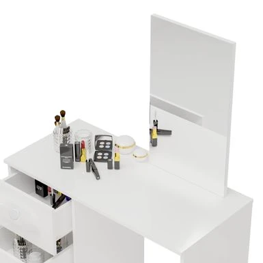 Get ready for your day or night out with the Boahaus Alexandra Dressing Table. This contemporary vanity set with mirror is perfect for any bathroom, bedroom, or dressing area. With a spacious top and three large storage drawers, it provides ample space to organize all of your makeup essentials and jewelry. The simple and modern design complements any decor style, making it a versatile addition to your space.