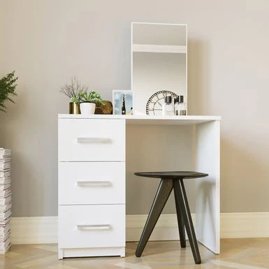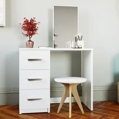Get ready for your day or night out with the Boahaus Alexandra Dressing Table. This contemporary vanity set with mirror is perfect for any bathroom, bedroom, or dressing area. With a spacious top and three large storage drawers, it provides ample space to organize all of your makeup essentials and jewelry. The simple and modern design complements any decor style, making it a versatile addition to your space.