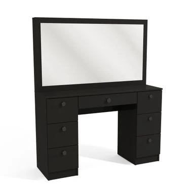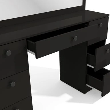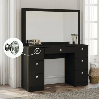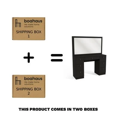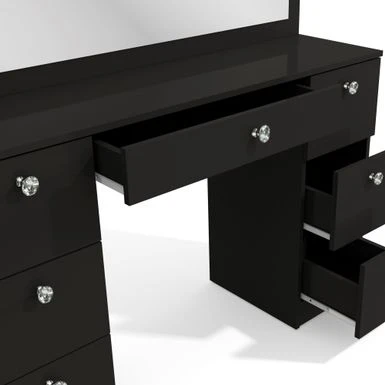 Boahaus Artemisia Modern Vanity, Black, Wide Mirror, 07 Drawers – Black-Crystal Ball Knobs
