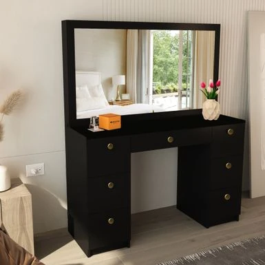 - 07 drawers to organize all your makeup essentials and jewelry with   ease. On the large top surface, there is still more than enough space on the   table to place souvenirs or your laptop.Â