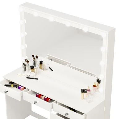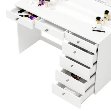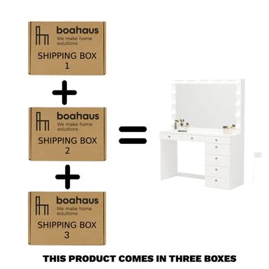 Boahaus Dressing Table, Light Bulbs, White, Mirror, 07 Drawers – White-Crystal Knobs