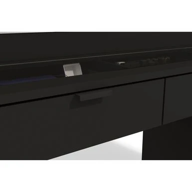 Get ready like a star with the Boahaus Jane Modern Vanity. Made of manufactured wood, its symmetrical silhouette and black finish exudes clean and modern style. With seven spacious drawers, you can keep all your essentials organized, from makeup to documents. The wide panel mirror (46″ W x 28″ H) gives you a full view and the glass top adds a touch of glamour. Perfect for getting ready or working on your laptop, this vanity measures 58.20″ H x 47.30″ W x 16.90″ D.
