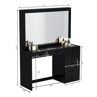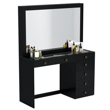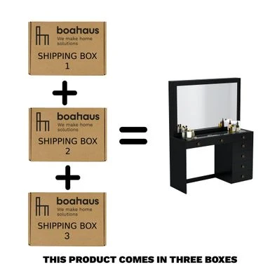 Boahaus Jane Dressing Table, Glass Top, 07 Drawers, Black – N/A – Golden Knobs