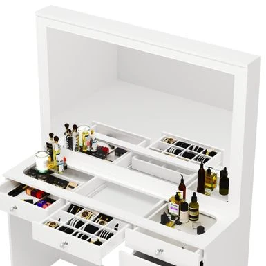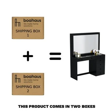 Boahaus Jane Dressing Table, Glass Top, 07 Drawers, Black – N/A – White – Crystal Ball Knobs
