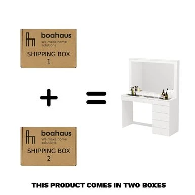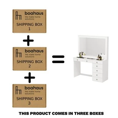 Boahaus Jane Dressing Table, Glass Top, 07 Drawers, Black – N/A – White – Crystal Knobs
