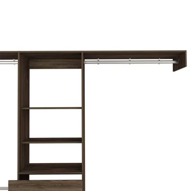 Looking for extra storage with a unique touch? The Boahaus Kassel Armoire in Brown is perfect for you! With its exclusive design, this armoire adapts to any corner of your room. Store your favorite clothes with five shelf applications, one drawer, and three metal rods to keep them organized. The armoire’s size (82.91″H x 98.43″W x 16.34″D) fits perfectly in your room and the dark walnut particleboard finish adds an elegant touch.