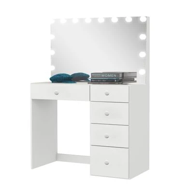 - This   dressing table with mirror features a Hollywood light bulbs add-on, adding   elegance and sophistication to your space. The vanity with lights is bright   enough for natural makeup application yet is also dimmable for you to adjust   to your preference.