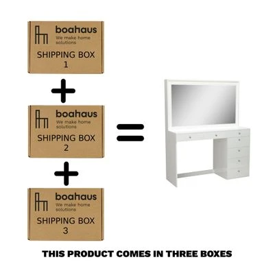 Boahaus Selene Dressing Table With LED Lights (White) – White-Crystal Ball Knobs