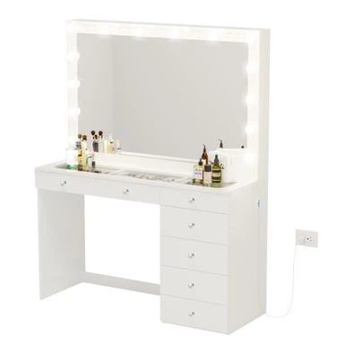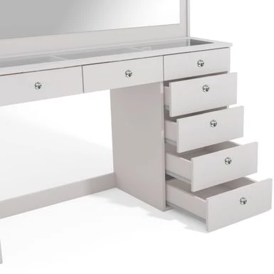 Boahaus Serena Lighted Vanity With Glass Top (White) – White-Crystal Ball Knobs