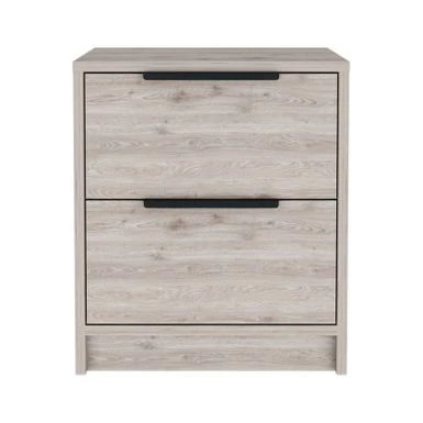 Enhance the elegance of your bedroom or living room with the Boahaus Toledo Nightstand in Light Gray. With its modern design and sleek appearance, this multi-functional piece is made of a resistant manufactured wood finish, ensuring long-lasting durability. The nightstand boasts two metal-handled drawers (7.4”H x 14.8”W) and a spacious top area. At 19″ high, this nightstand is sure to make a statement with its stunning finish. Assembly is required, and the product measures (16.1”W x 14.37”D x 18.90”H).