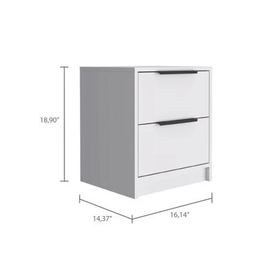 Add a touch of modern elegance to your bedroom or living room with the Boahaus Toledo Nightstand in White. Made of durable manufactured wood with a sleek finish, this versatile piece offers ample storage and display space. Its two metal-handled drawers (7.4”H X 14.8”W) provide convenient storage for all your essentials, while the large top area is perfect for keeping your favorite book or a cup of tea within reach. Measuring 19″ in height and 16.1”W X 14.37”D X 18.90”H in assembled dimensions, this nightstand combines style and function to elevate any space. Assembly is required.