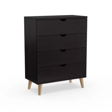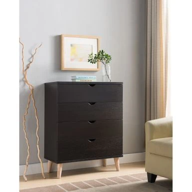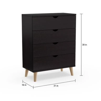 - Four (4) wide and spacious drawers with unique cut-out handle designs