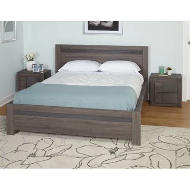 - Set includes: 1 headboard, 1 footboard, 1 set of rails, slats, 2 nightstands