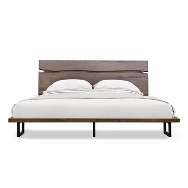 - Horizontal panels on the headboard feature a live edge for a rustic feel