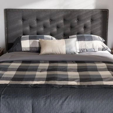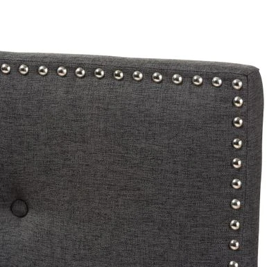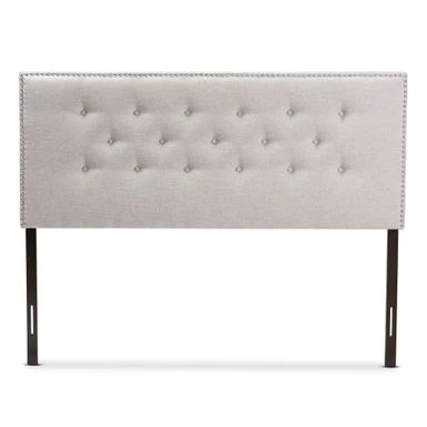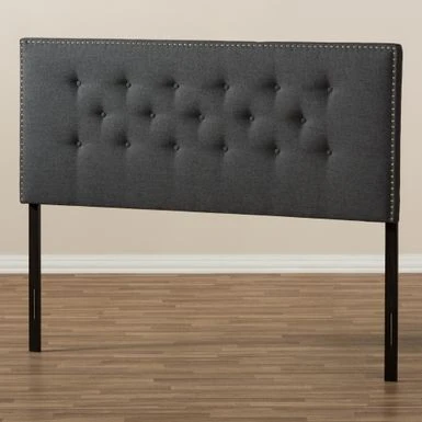 Add a touch of sophistication to your bedroom with the Contemporary Fabric Headboard by Baxton Studio. Constructed of durable rubberwood and MDF, this headboard is upholstered in tough yet soft polyester fabric that will last for years to come. Deep button tufting and silvertone nailhead trim add a modern touch, while the foam-cushioned design provides a cozy and luxurious look. With five adjustable pre-drilled screw holes for the headboard and two adjustable levels for the bed frame, this headboard is both sturdy and customizable.