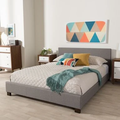 Instantly update the look of your bedroom decor with thissturdy platform bed from Baxton Studio. This frame features anupholstered headboard for comfort and strong construction to ensureyears of use. This furnishing is available in both queen and fullsizes, so you can get the perfect fit for your mattress.