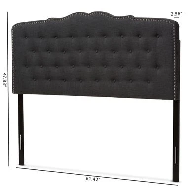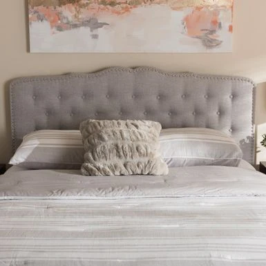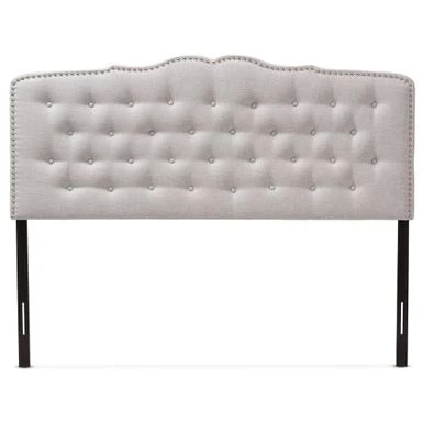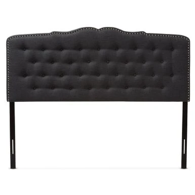 Bring a touch of sophistication to your bedroom with the Copper Grove Craik Contemporary Fabric Headboard. The scalloped style headboard is upholstered in soft polyester fabric and features classic details such as button tufting and nailhead trim. Available in dark grey or greyish beige, this contemporary style headboard is made from durable rubberwood and MDF, and comes in twin, full, queen or king sizes to suit your needs. Assembly is required and the bed frame is not included. Spot clean only.