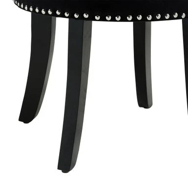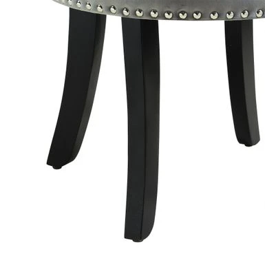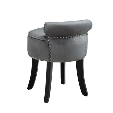 Add a touch of elegance to your home with the Copper Grove Meghri Vanity Stool. This piece features a button tufted rolled back and silver decorative nail head trim, providing a classical charm that fits any decor. The stool is available in black or grey velvet and is made with high density foam for exceptional comfort. The solid birch legs add a traditional touch, making it the perfect little piece for your living room, bedroom, or entryway.