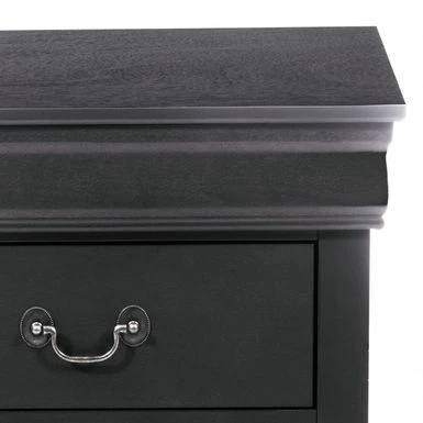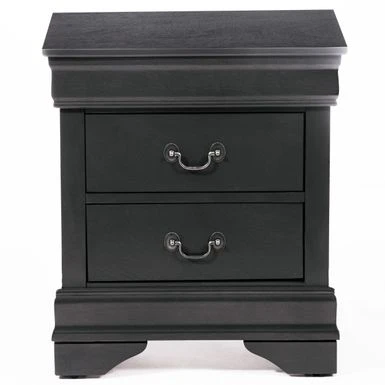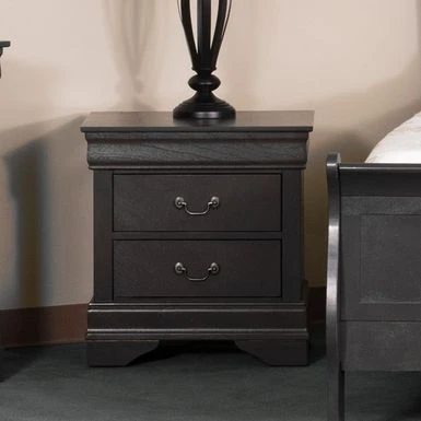 Bedside manner you’ll absolutely love. Bedside manner you’ll absolutely love. The Traditional Grey Nightstand is finished in the most soothing dove grey, a shade designed to bring calm and elegance to any bedroom. This beautifully constructed piece features gorgeous molding and antique style bail handles for the perfect classic touches. For your bedside storage needs, this nightstand boasts two drawers of generous dimensions.